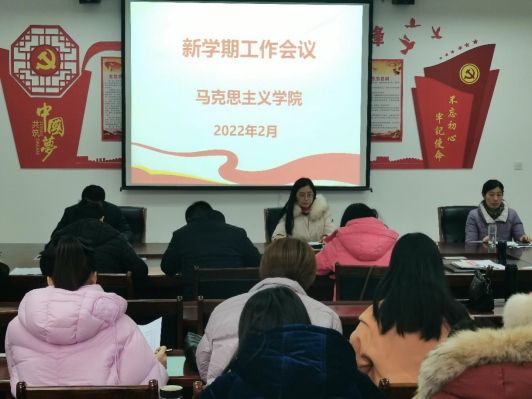接着,祁欢院长安排了开学第一课的备课情况,要求把党的十九届六中全会精神、习近平总书记关于体育的重要论述、中国共产党第十一次代表大会精神融入思政课堂,确保思想政治教育第一课取得扎实成效。祁院长从“强队伍”、“抓亮点”、“塑品牌”三个方面部署了马院2022年度工作:一是强队伍。续推进教师培训制度、抓好每学期的期末教学竞赛及教师录课工作,逐步落实完善精品在线课程资源库建设工作;二是抓亮点。“大别山精神研究中心”为依托,在教学、科研等方面做好大别山精神研究。三是塑品牌。在组织好“大学生讲思政课”活动的基础上组建“大学生宣讲团”,开展迎接、学习、宣传党的二十大专项行动以信职思语公众号为载体,推进网络思政建设,探索“大思政”工作模式,落实省教育厅提出的“融媒+育人”工作理念。