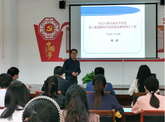 为深入学习贯彻党的二十大精神,2023年5月30日下午,beat365亚洲版官方网站副院长柯涛为马院全体党员上了题为《坚定不移全面从严治党 深入推进新时代党的建设新的伟大工程》的主题党课。