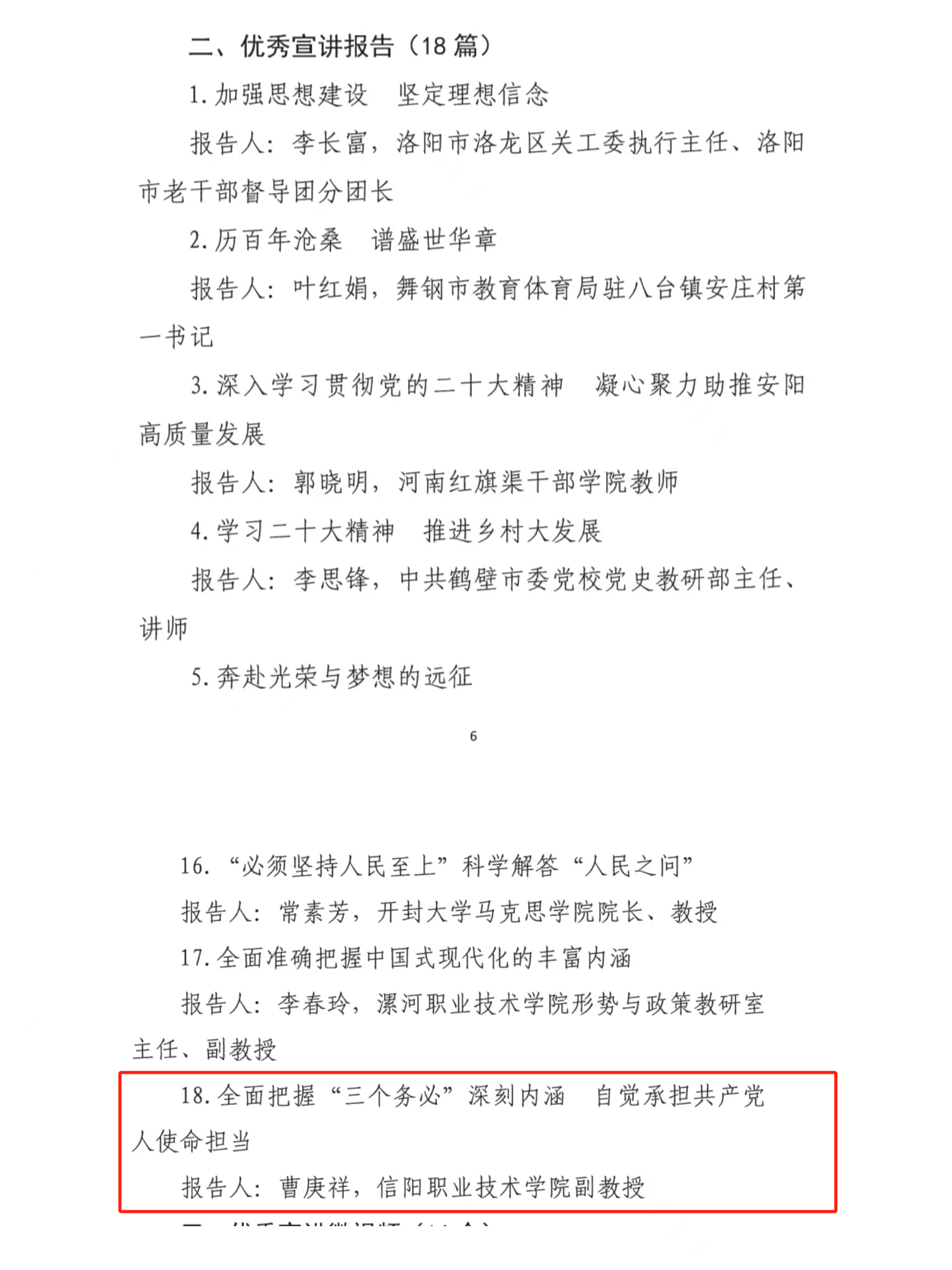beat365亚洲版官方网站曹庚祥老师荣获2023年度河南省优秀理论宣讲报告
