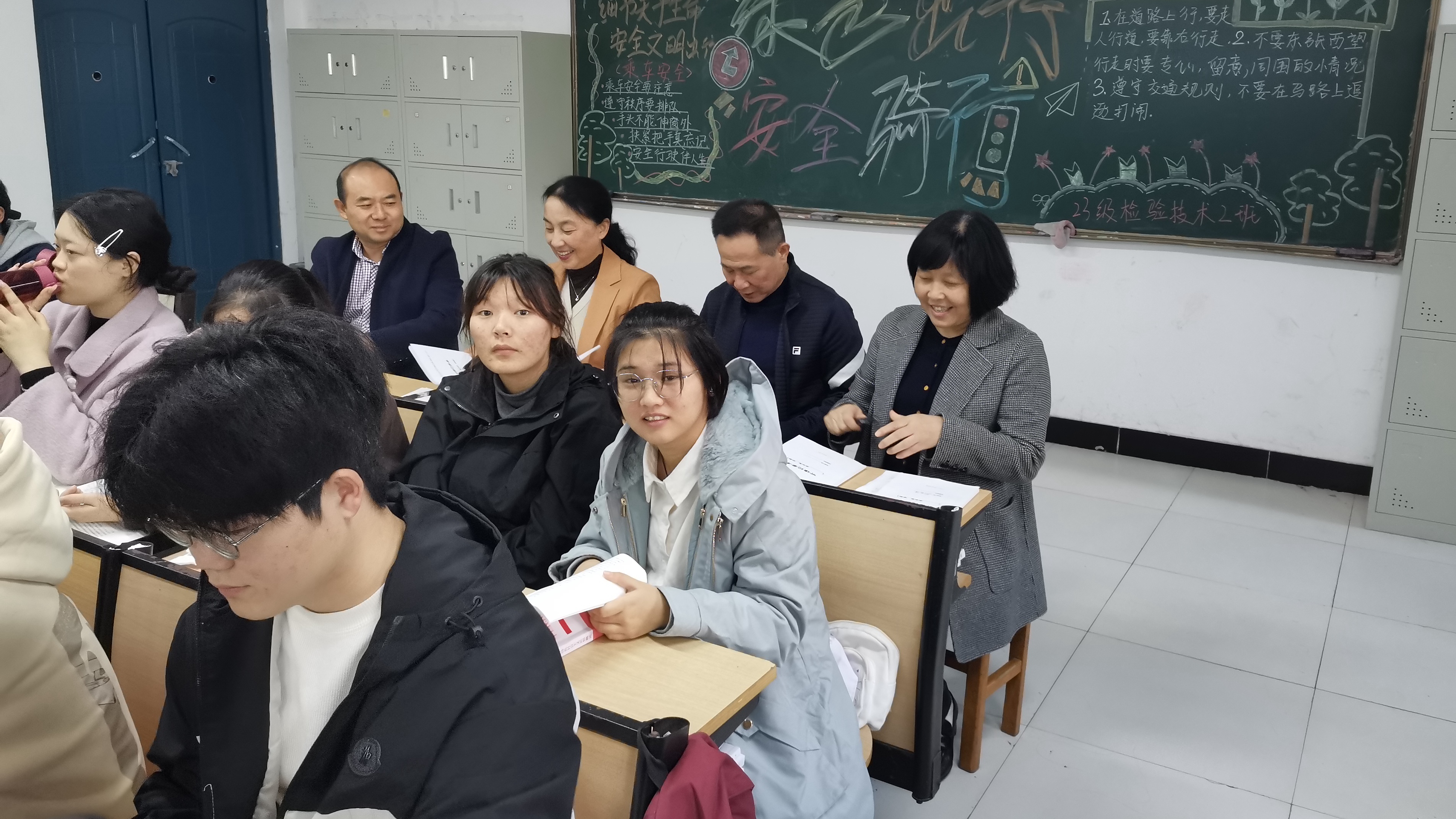 为贯彻落实《教育部办公厅关于开展2024—2025学年高校思政课课堂教学提升行动的通知》精神,10月22日上午,学校副校长郑延芳、周有国在检验学院领导和教务处工作人员陪同下,来到23级医学检验02班,听取beat365亚洲版官方网站教师许雅莉的思政课,深入了解思政课教学组织及授课情况。