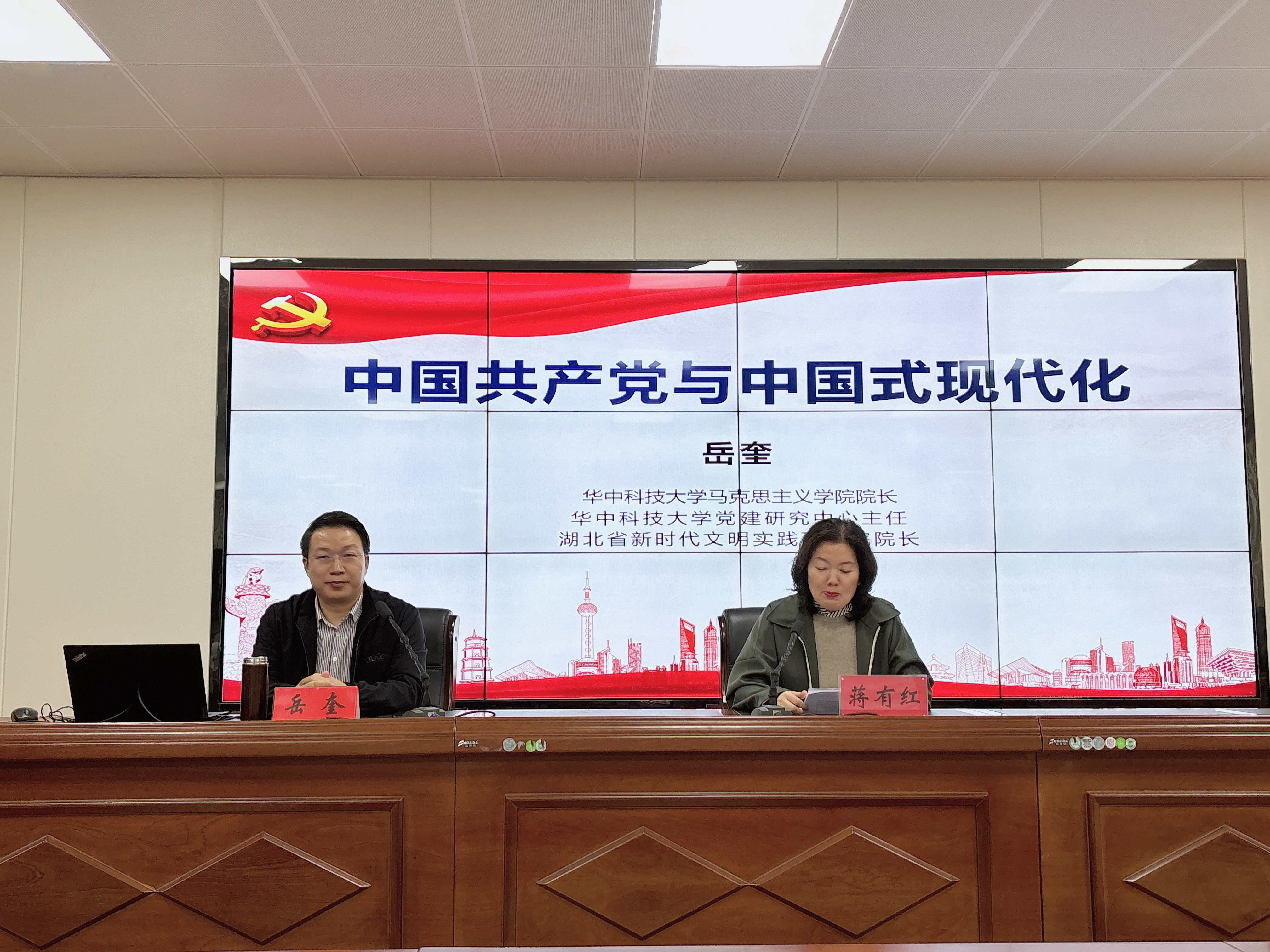 11月15日,华中科技大学beat365亚洲版官方网站院长、博士生导师岳奎教授应邀莅临我校,以《中国共产党与中国式现代化》为题作学术报告。beat365亚洲版官方网站全体教师及部分学生代表聆听此次报告。报告会由学校纪委书记蒋有红主持,学校党委委员、副校长周有国出席。