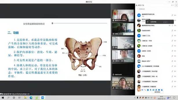 祁老师讲课节目为《骨盆矫正技术在妇科康复中的应用》,采用直观的文字,生动的图片、视频,深入浅出,讲解了骨盆的生理结构及其重要性,并从运动生物力学角度讲解了骨盆侧倾及旋移对身体骨骼、运动结构产生的影响,产后康复的重要性以及如何进行骨盆矫正。注重挖掘学生的自主学习能力,教学过程中与学生的交流互动,最终圆满完成本次公开课,获得师生的一致好评。