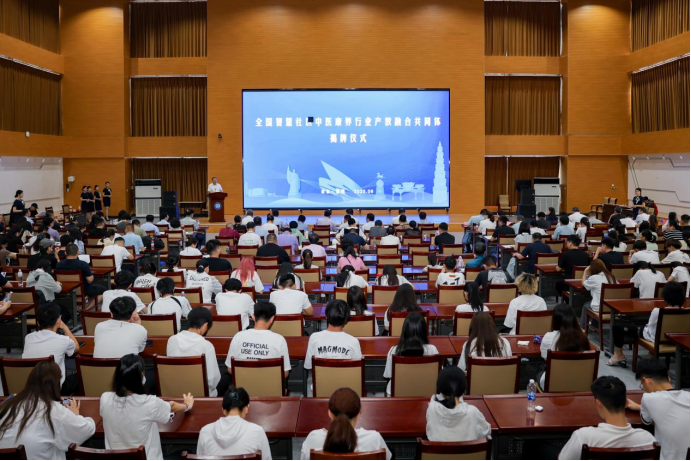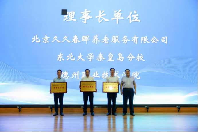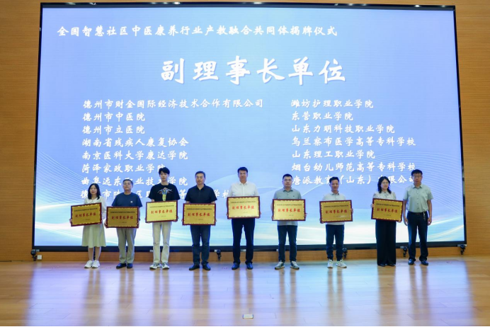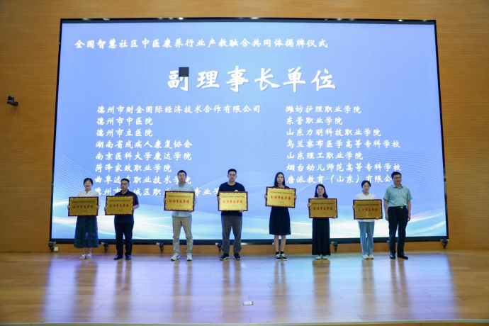 6月14日,全国智慧社区中医康养行业产教融合共同体成立大会在开云kaiyun登录入口召开。山东省职业教育和产业人才研究院院长刘昕,开云kaiyun登录入口党委书记樊兆杰,中国康养东大研究院院长张晓飞,北京久久春晖养老服务有限公司总经理胡飞,市妇联党组书记、主席刘芳,市财鑫集团党委书记、董事长赵作勇,市教育局党组成员、副局长张少先,市技工教育发展中心主任马秀鸿等市有关部门领导,校领导班子成员出席大会。德州职院党委副书记、院长孟繁营主持大会。