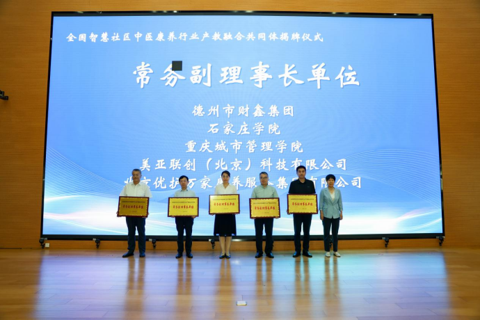 樊兆杰、刘昕、胡飞、张晓飞、刘芳、马秀鸿、张少先、马青霞共同点亮大屏幕,为全国智慧社区中医康养行业产教融合共同体揭牌。
