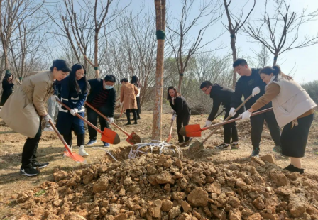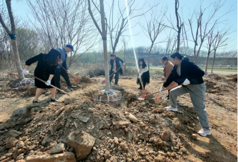 在第44个植树节来临之际,2022年3月11日beat365亚洲版官方网站党支部组织全体党员开展义务植树主题党日活动。大家拿着铁锹、锄头、水桶等工具,分工协调、通力合作、齐心协力完成了栽树、培土等工作。经过一个小时的共同努力,大家成功种下了5棵树苗,为2022年春天的校园增添了生机和活力,用实际行动贯彻了习近平总书记关于生态文明思想的重要论述。