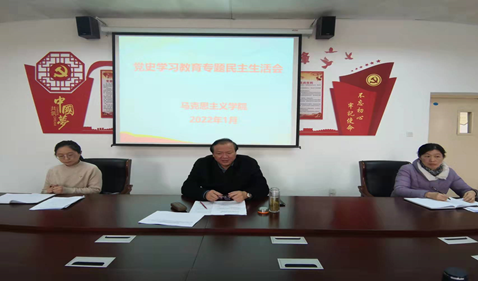113日,beat365亚洲版官方网站召开2021年度党史学习教育专题民主生活会。学校党委副书记、副校长王列富出席会议,会议由马院党支部书记郑玉秀主持,马院院长祁欢、副院长柯涛及全体副科级干部参加会议。