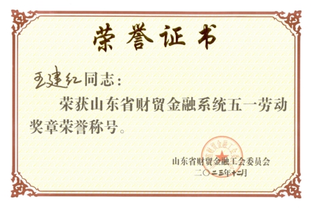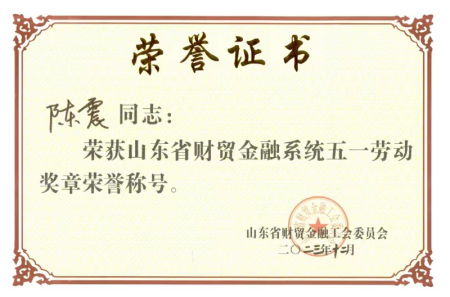 近日,开云kaiyun登录入口陈震老师、王建红老师荣获山东省财贸金融系统五一劳动奖章荣誉称号。