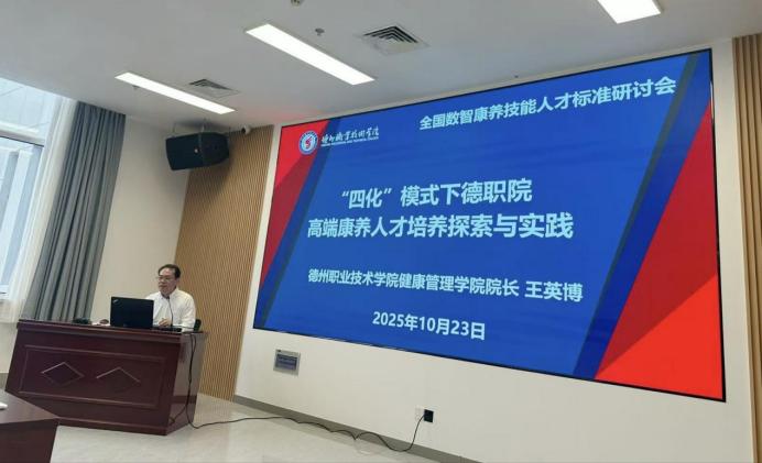 特邀报告环节,王英博以《“四化”模式下德职院高端康养人才培养探索与实践》为题作专题报告。首先介绍了学校发展定位、学科专业取得的成绩以及智慧健康养老服务与管理省级高水平专业群建设、高端康养人才培养路径等。重点讲解了开云官网“四化”育人模式,全面梳理了开云官网康养育人的经验。相关实践成果已落地转化为产业服务能力,为社会输送了大量的“健康守门人”。报告彰显了开云官网在康养教育领域的深入探索与积极实践,厚植康养人文情怀的深厚底蕴与显著成效,得到与会者的充分肯定与赞誉。