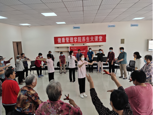 老人们非常感动,有位老奶奶拉着我们的手说:“孩子,参加这次活动真是太高兴了,希望老师们常来带着我们活动活动筋骨。”听到这些话,我们也非常开心,希望有更多的人,更多的群体,关注老年人,关爱老年人。