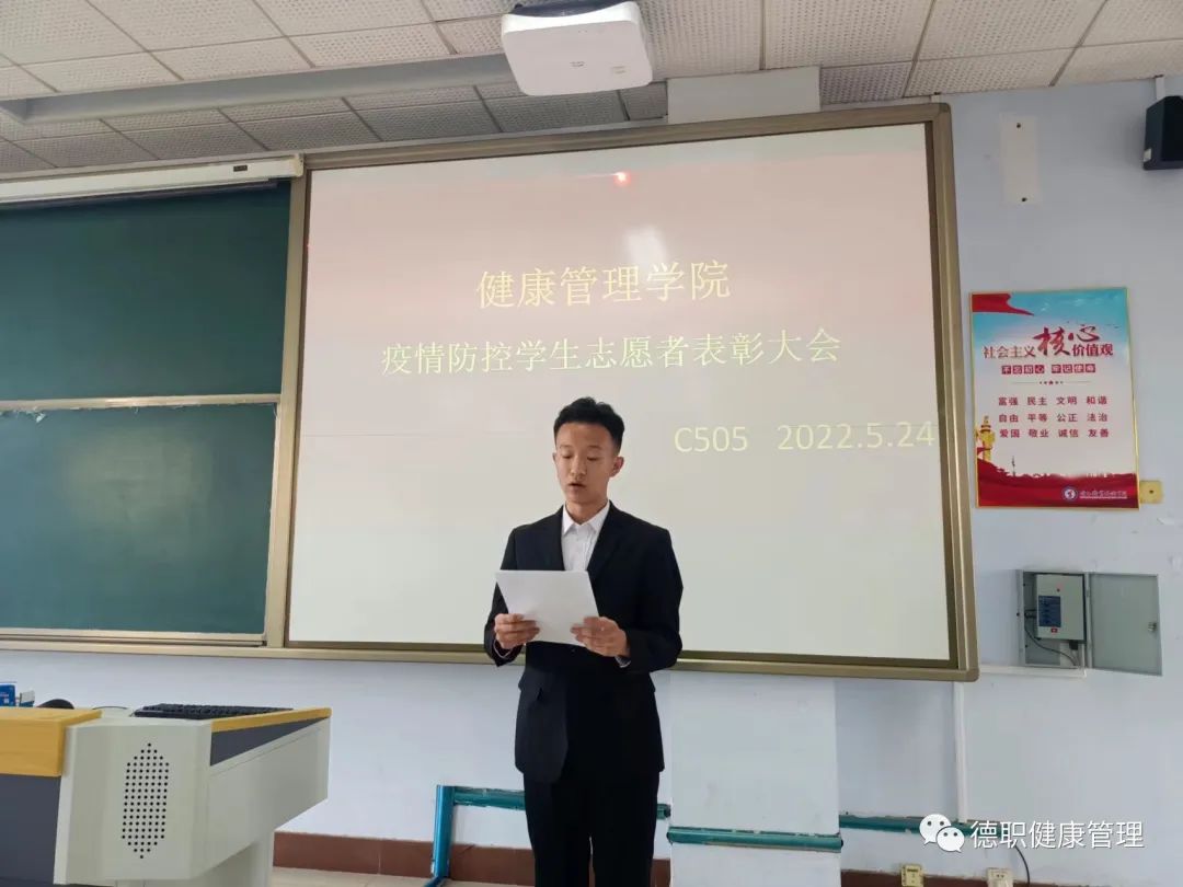 五月繁花盛开,朝气蓬勃,表彰大会如约而至。2022年5月24日,开云官网举行疫情防控志愿者表彰大会,向挺身而出、无私奉献投入疫情防控战的志愿者们致以崇高的敬意。辅导员孙小龙老师参加了此次活动,活动由高欣梦同学主持。