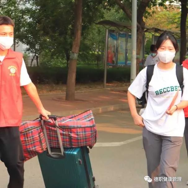 根据疫情防控要求,父母无法进入校园。看着家长们关切和不舍的眼神,身穿志愿者马甲的学哥学姐们主动帮助学弟学妹搬运行李,让家长们少了些许牵挂。