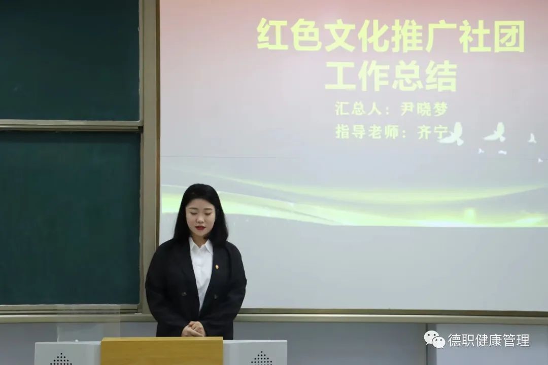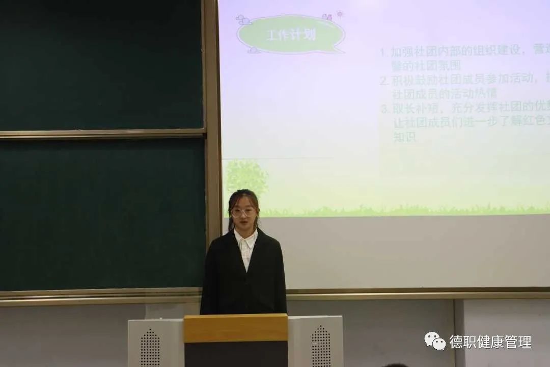 会议开始,本次换届的社团有红色文化推广社团、健康饮食社团、形象美学社团、相声小品社团。首先由社团各负责人做工作总结。