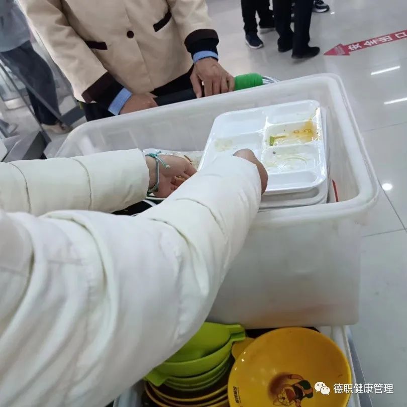 1、排队就餐,杜绝浪费,餐后自收餐具;