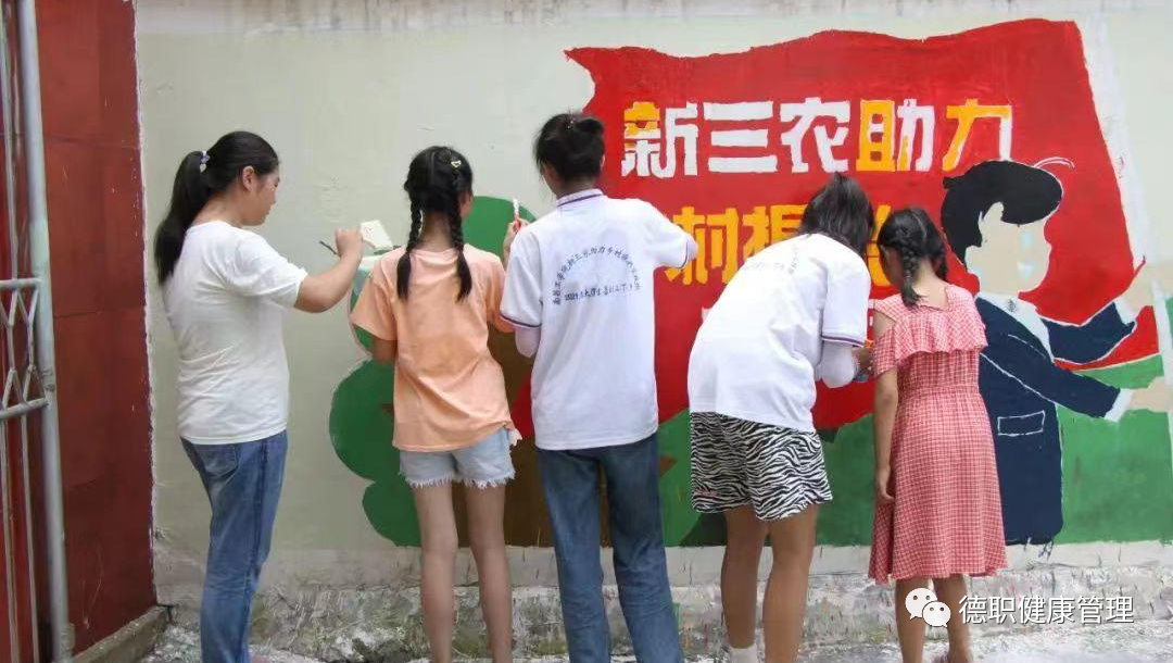 设计独具特色的墙绘方案,完成墙面清理、刷底、起稿、上色等工作。和小朋友们一起绘画完成,将“新三农助力,乡村振兴”内容展示在墙上,实实在在把村民的愿望展示出来。