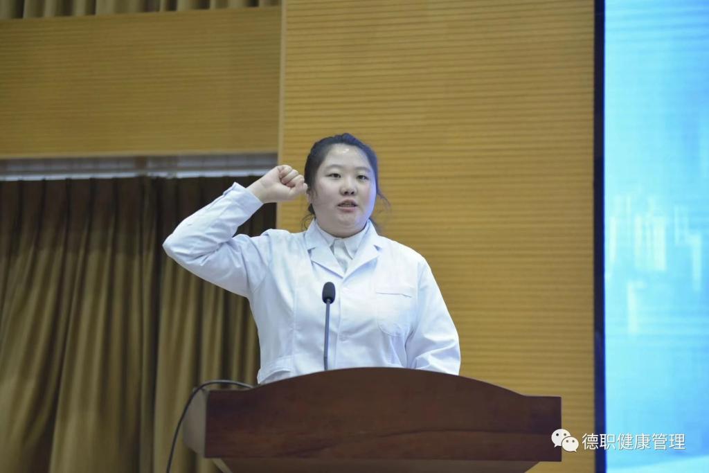 职工组参赛代表任彬彬、学生组参赛代表董云菲分别宣誓