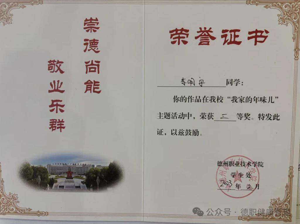 2023年2月开云官网“我家的年味儿”主题活动中,荣获三等奖。
