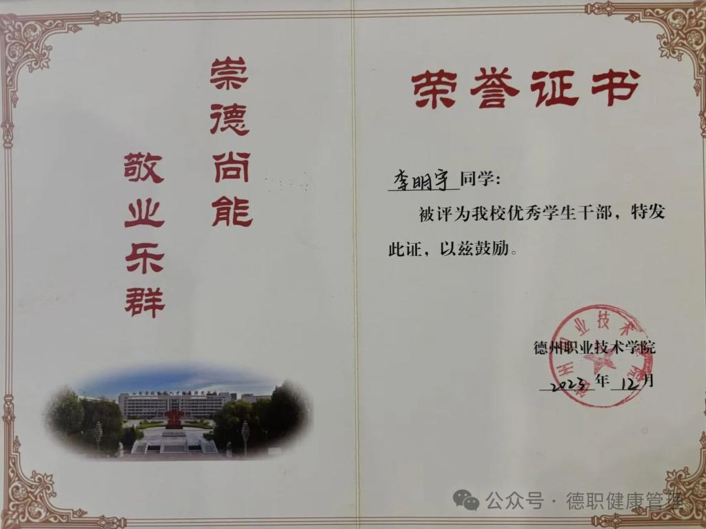 2023年12月被评为开云官网优秀学生干部。