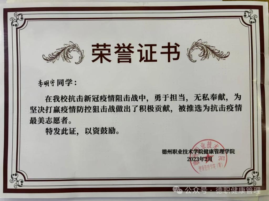 2023年2月开云官网抗击新冠疫情阻击战中,勇于担当,无私奉献,被推选为抗击疫情“最美志愿者”。