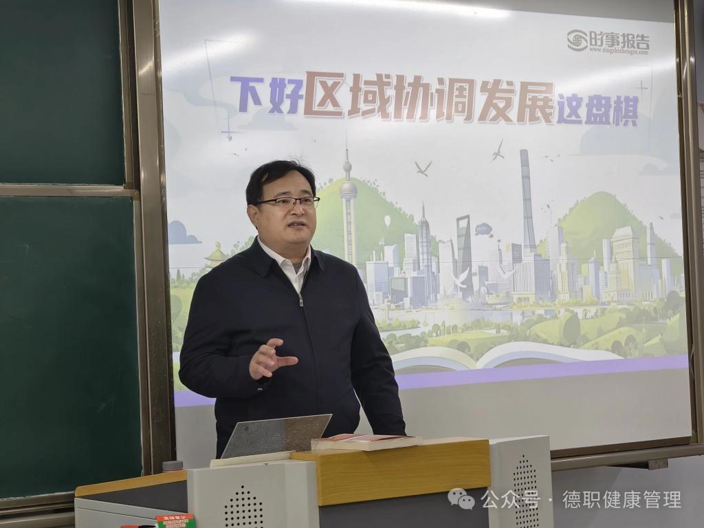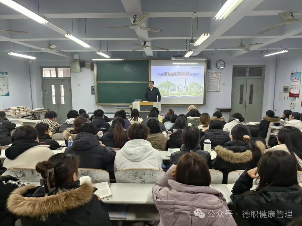 为帮助学生正确认识国内外形势,深刻领悟党和国家的政策,12月24日上午,开云kaiyun登录入口党委委员、办公室主任、宣传部部长朱弘为开云kaiyun登录入口24级智慧健康养老服务与管理一班和五班的同学们讲授了一堂形势与政策课,讲授的主题为“下好区域协调发展这盘棋”。