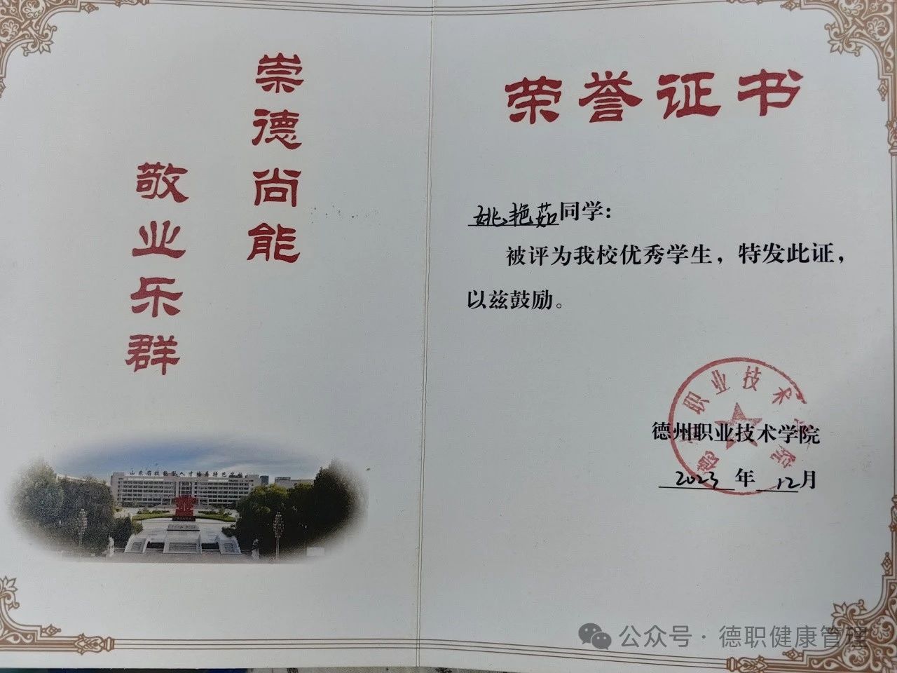 2023年12月被评为开云kaiyun登录入口“优秀学生”。