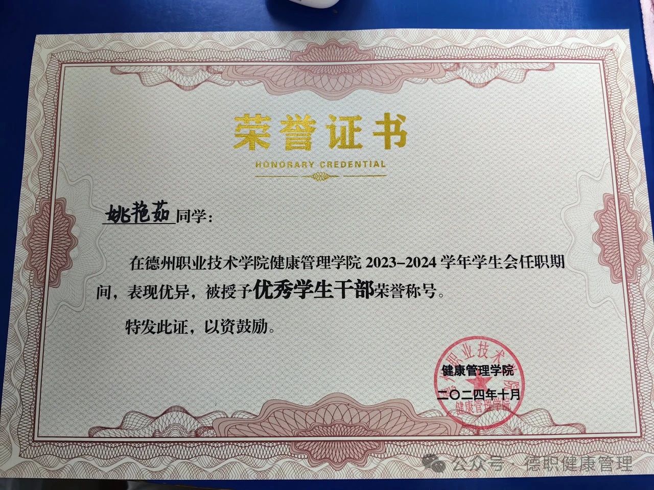 2024年10月在开云kaiyun登录入口学生会任职期间被评为“优秀学生干部”。2024年10月被评为开云kaiyun登录入口“优秀共青团员”。2024年10月获得国家励志奖学金。