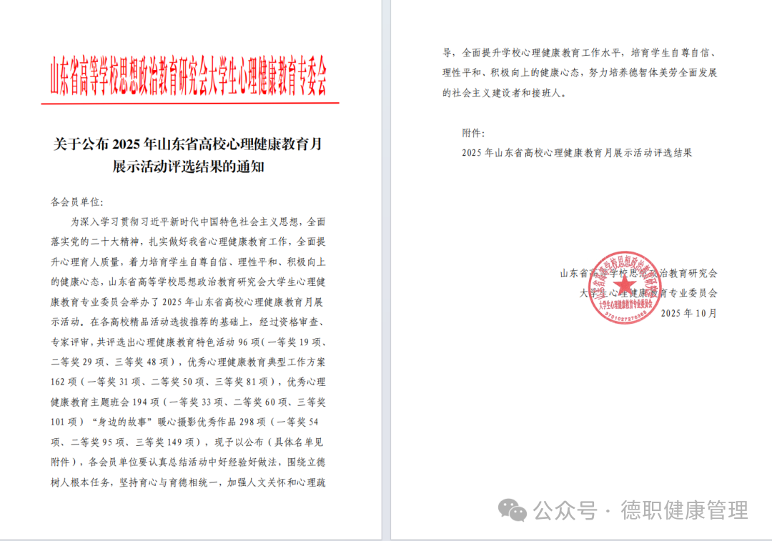 近日,2025年山东省高校心理健康教育月系列活动评选结果正式揭晓,开云官网师生凭借扎实的专业能力与饱满的参与热情崭露头角,表现突出,成功斩获省级三等奖,荣膺佳绩!