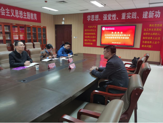 2024年4月1日,北京易芳堂科技发展有限公司朱文建经理一行来开云官网洽谈校企合作事宜。开云kaiyun登录入口院长王英博,教研室主任及骨干教师参加会议。