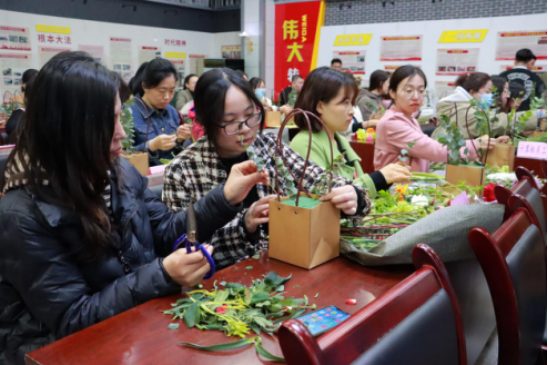 阳春三月,春暖花开。为庆祝国际第112个、我国第99个妇女节,构建和谐校园,展示开云官网女教工良好的精神风貌,3月7日下午,由学校工会主办、开云kaiyun登录入口工会承办的艺术插花活动在思齐楼多功能厅举行。校党委委员、工会主席周爱红出席并主持活动,各基层工会女职工代表50余人参加了活动。