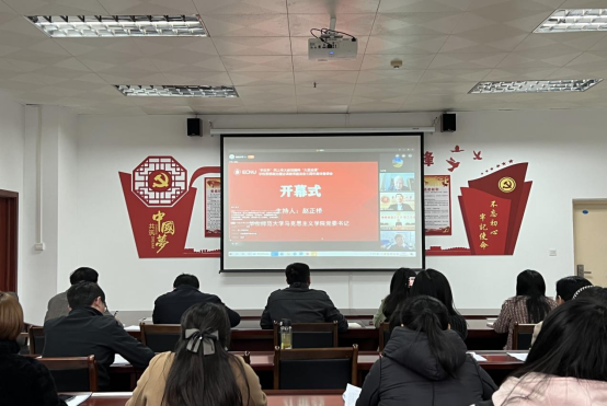 2022年3月17日下午,beat365亚洲版官方网站组织全体教职工收看学习由中共河南省委教育工委、河南省教育厅联合中共上海市教育卫生工作委员会、上海市教育委员会、华东师范大学开展的“‘手拉手’同上伟大建党精神‘大思政课’——学校思想政治理论课教师座谈会三周年集体备课会”,活动由beat365亚洲版官方网站院长祁欢主持。