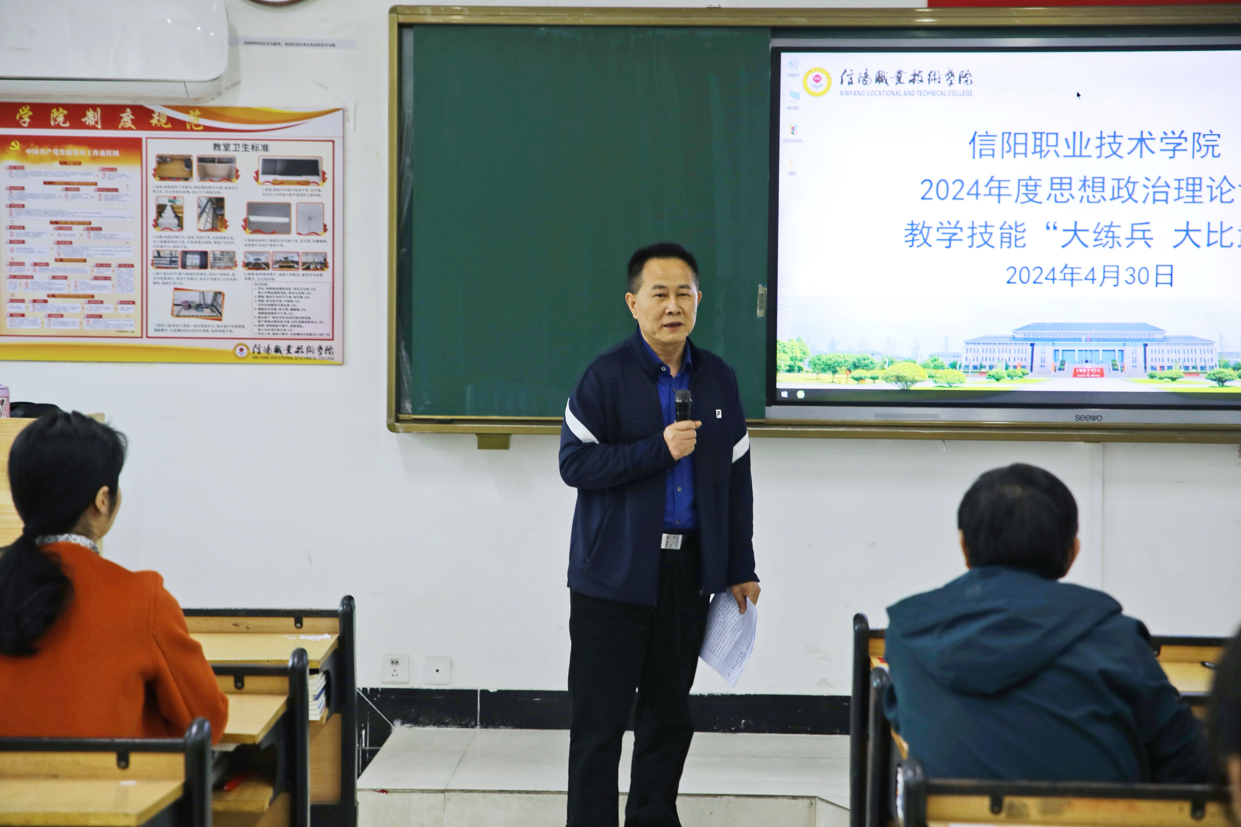 为贯彻落实《中共河南省委宣传部 中共河南省委教育工委 河南省教育厅关于开展2024年度全省学校思想政治理论课教学技能“大练兵、大比武、大展示”活动的通知》精神,进一步提升我校思政课教师教育教学质量和水平,学校于4月30日下午举办了思政课教师教学技能“大练兵、大比武”活动。信阳师范大学beat365亚洲版官方网站院长唐国战、信阳航空职业学院beat365亚洲版官方网站院长邱兴平、信阳学院beat365亚洲版官方网站院长朱新荣、我校语言与传媒学院院长李萍、宣传部文明创建科科长刘曼曼等5名专家应邀担任评委,副校长周有国莅临现场观摩指导。