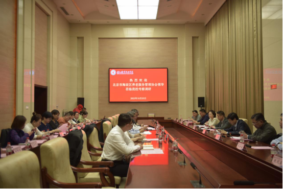 10月25日,北京市海淀区民政局养老服务指导中心副主任王洪涛一行来到开云kaiyun登录入口考察交流。院长张同光,党委委员、副院长周吉星热情接待,学校相关部门负责人参加活动。