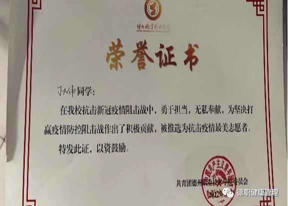 清醒而冷静、虔诚而执着、至信而深厚。他深知时代对青年之所望,牢记宗旨、坚定信念。在大二,通过自己的努力,成为了一名入党积极分子。平日里他主动加强政治学习,不断将先进思想付诸于实践,利用课余时间,积极参加各类志愿服务活动,获得了"优秀青年志愿者""抗击疫情最美志愿者"称号。